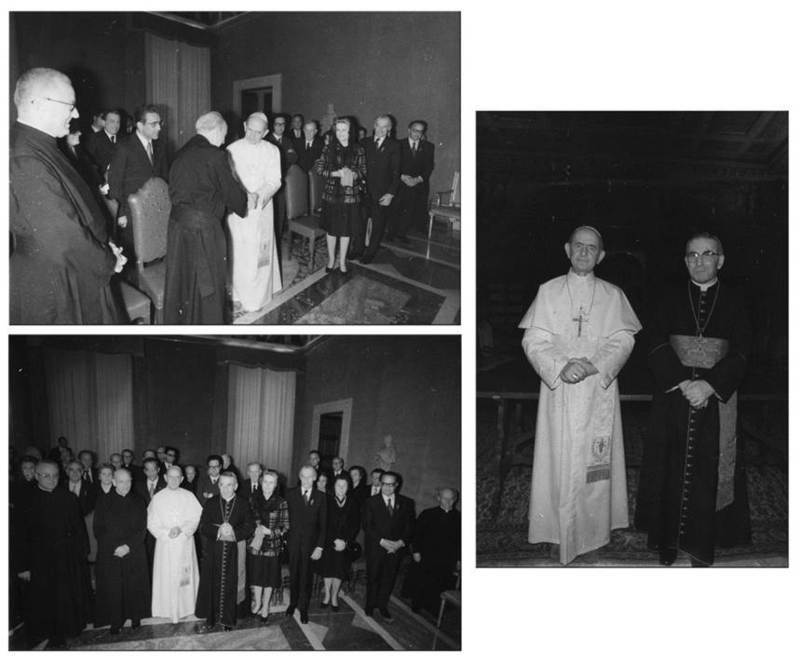 A luncheon in honor of the Rev. Roberto Busa, and members of the clergy, given by IBM in the Sherry Netherland Hotel, New York, is attended by, left to right, counter clockwise: Perry J.W. Prof, Bradley Phil, Bier William op Rev., Castelli Francis, Mirabile Charles, Tasman Paul, Provasoli Louis Dr., Ryan John, IBM sales representative, Rebsamen G.J., Merriwether Stuart, Prof., Parker William R. Prof., Silver Henry, Busa padre, Phillips J.G., Tessarolo Giulio Rev., Yannitelli Victor SJ Rev., Pennell L.P. [Note: this description is given in the corresponding index file. This file was, to the best of our knowledge, compiled and maintained by Busa himself]
